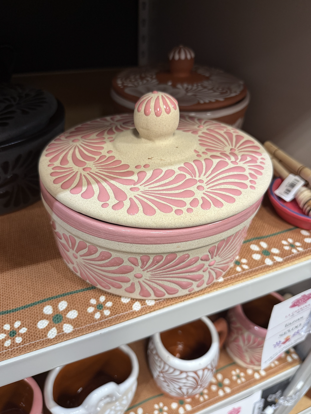 Our barro tortillero is handcrafted from clay, designed to bring a touch of tradición y color to your kitchen. Perfect for serving tortillas at la mesa or storing them for later, it’s both functional y adorable — a little piece of Mexican heritage in your daily life.