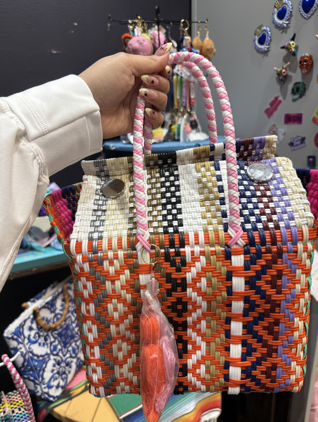 Our medium woven loncheras are handcrafted from recycled plastic and designed in vibrant, eye-catching colors that celebrate cultura in a modern, feminine way. With more space to carry your essentials, this size is perfect for fuller lunches, daily must-haves, or your on-the-go moments.