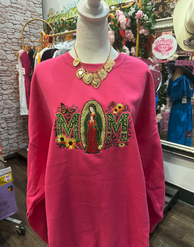 Wrap mamá in cultura y cariño with this adorable embroidered “MOM” sweater 🩷✨